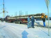 I sidste uge - i strålende vintersol - ankom »Fregatten Jyllands« nye mastetræer, som kort før jul blev fældet i Sønderskoven ved Silkeborg.