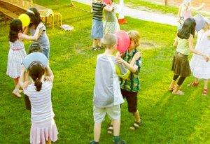 og som til et rigtigt »garden party« var der ballondans (billedet), lakridssnøre- og skumfidusspisningskonkurrencer, samt danseoptrædender af forskellig art.