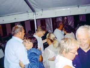 Trængsel på danse-gulvet i forbindelse med sidste års Kræmmermarked ved Grenaa Havn.