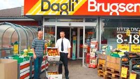 Henrik Borg, der er medlem af skolebestyrelsen for Voldby Skole, har med hjælp fra lokale erhversdrivende fået en række sponsorater, så man kan starte en gratis frugtordning til alle eleverne. Skolen kom ikke med i ministeriets »Frugtkvarter«-pulje, og har derfor startet en lokal indsamling via sponsorater. Her ses Henrik Borg sammen med den lokale brugsuddeler, Jon Klarskov, som står for levering af frugten, og ligeledes også har bidraget med et sponsorat.