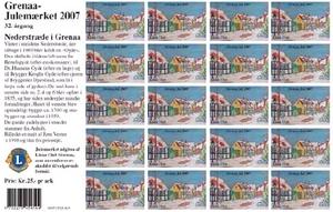Det er 32. gang, Lions Club Grenaa udgiver et lokalt julemærke. Mærket blev udsendt første gang i 1976, hvor den gamle købmandsgård på Torvet i Grenaa var motivet. Siden har klubben hvert år skudt julen i gang med et nyt julemærke med lokale motiver. Godt 87.000 ark er i årenes løb blevet solgt, og mærkerne har tilsammen indbragt cirka 725.000 kroner. Penge, som Lions Club Grenaa har sendt videre som donationer til lokale foreninger, skoler, spejderbevægelser, plejehjem, sygehuse og lignende.