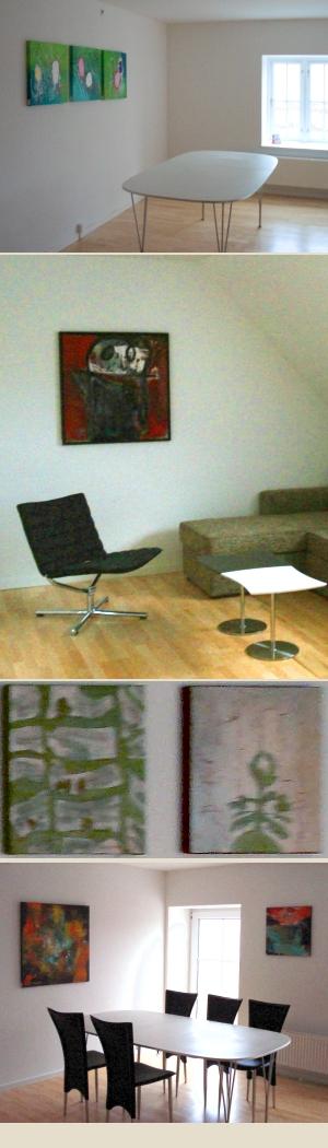 På et af de superskønne værelser på Gl. Løgten Strandkro, hænger der værker af Annette Nitzsch./Iben Laursen/Charlotte Bottke/Lis Jensen