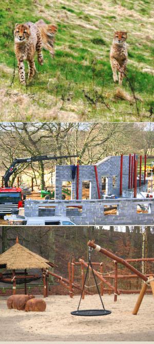 [øverst] Store gepardkillinger [midten] Girafstald byggeri [nederst] Naturlegeplads