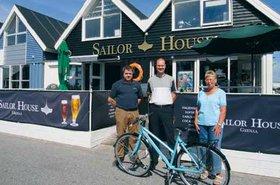 På billedet vinderen af cyklen, Bente Eriksen, i midten opfinderen af teknologien med See-mi, Carsten Mulvad Sørensen, og til venstre Kim Olesen fra Sailor House.