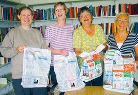 Kulturcaféens bestyrelses ses her med hver sin bogpose fra Grenaa Bibliotek. Fra venstre ses Vita Glad Petersen, Lis Christiansen, Kirsten Foged og Mie Christensen. På billedet mangler Hanne Würtz.