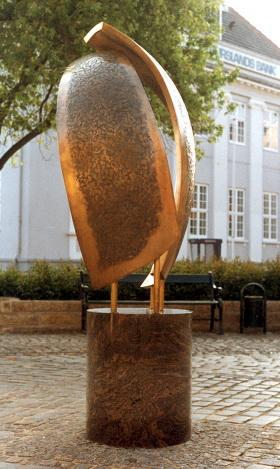 Skulpturen og stenbasen er ca. 1,60 centimeter høj og 60 gange 60centimeter bred. Den har været udstillet i påsken i år som model på Aprilgruppens udstilling i Baunhøj Mølle i Grenaa.