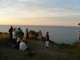 Vi tager cykelstien til Femmøller, byen med de fem møller. Ved Overmøllen stiller vi cyklerne og traver til Besøgscentercenteret Øvre Strandkær i Mols Bjerge og retur ad Den Italienske sti.