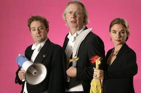 De klassiske operasangere Jesper Brun-Jensen og Hans Dueholm optræder på slap line med Anne Lise Quorning som musikalsk domptør.