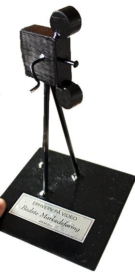 Filmprisen er ikke blot en guldmand, men forestiller meget mere relevant et filmkamera fra stumfilmens tid, fremstillet i værkstedet på Grenaa Tekniske Skole. (Foto: Haakon R. Petersen)