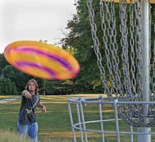 Prøv Disc-golf i den skønne skov "Bakkerne" ved Ørsted. Få motion og frisk luft, - en anderledes måde at være aktiv i og opleve naturen på.