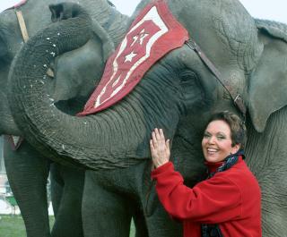 Diana Benneweis med to af de tre medvirkende elefanter.