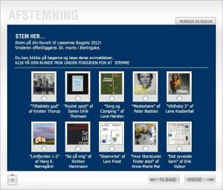 Hvilken dansk bogudgivelse var den bedste i 2011? - Danmarks Biblioteksforening og Berlingske skal for 9. gang uddele Læsernes bogpris og du kan stemme på den udgivelse som du mener fortjener prisen. Sidste år deltog flere end 16.000 i afstemningen ! - Den 29. marts præsenteres den vindende forfatter på Danmarks Biblioteksforenings årsmøde i Frederikshavn og overrækkes der prisen på 75.000 kroner.