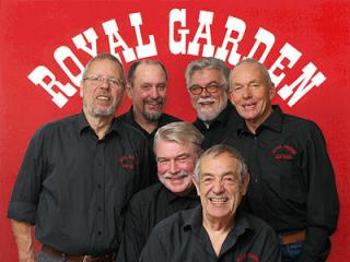 Royal Garden Jazzband spiller i den gamle og fredede bindingsværksgaard Lyngsbæk ved Femmøller på Mols lørdag den 18. august 2012.