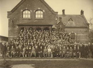 Personalet til 25 års jubilæum for aktieselskabet Grenaa dampvæveri.