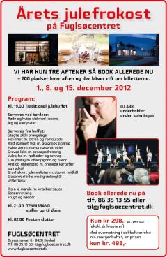 Fuglsøcentret har tidligere afholdt 2 julefrokoster i år, nu kommer tredie og uigenkaldeligt sidste, så book nu ! - Der er 700 pladser, men der bliver rift om billetterne ! - DJ A38 underholder under spisningen.