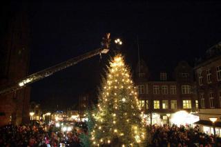 Juletræet blev tidligere tændt på torvet i Grenaa.