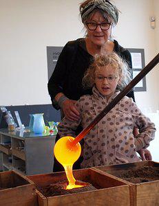 Besøg Glasmuseets arbejdende værksted her i vinterferien og kom helt tæt på, når den varme glasmasse forvandles til flotte brugsting. Støb dit eget lille kunstværk af varmt glas. Et aftryk laves i en kasse med vådt sand og fyldes med flydende glas. Figuren kan hentes dagen efter. Forud tilmelding er ikke nødvendig.