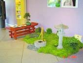 På billedet kan man se, at Jyske Bank i Grenaa fejrer det specielle tilbud i samarbejde med Den japanske Have i Ålsø ved Vibeke og Børge Christensen. Det er således de to, der har lavet denne fine japanske mini-have i Jyske Bank i Grenaa.