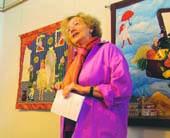 Vibeke Hansen fortæller om sine stofbilleder under ferniseringen på H. C. Andersens fødselsdag lørdag den 2. april.