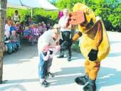 Børnene var også glade - både for sangbøgerne, den lækre kage og sidst men ikke mindst Grønse, som var et meget spændende/farligt indslag denne onsdag formiddag i Åparkens Børnehave i Ørum.