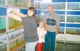 En hel væg er fyldt med akvarier med fisk, og da undertegnede var på besøg i butikken hilste jeg på Poul og hans datter Sara, der havde brug for køb af nye arkvariefisk og akvarieplanter.