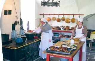 Herregårdskøkkenet er et af de steder på Gl. Estrup, hvor der ofte er varme, aktivitet og tid til en god snak med de besøgende. Foto: Berit Guldmann Hornstrup.