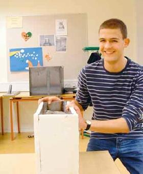 Den 18-årige studerende trives godt med skolen og det, at han kan komme lidt væk fra bøgerne af og til, når de skal løse en praktisk opgave, som nu for nylig miljø og rensning af regnvand. Her skulle han og hans medstuderende i 1. b både sætte sig ind i stoffet og så udvikle et primitivt rensningsanlæg. Og skulle Johnny svejse og fræse.