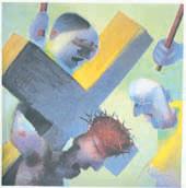 Her ses billedkunstneren Arne Haugen Sørensens maleri fra 1995 "Han bar selv korset"