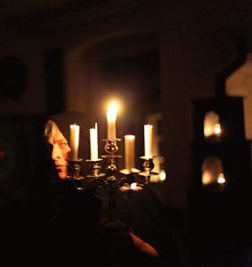 Besøg sale og gemakker i skæret fra stearinlys. Hør spøgelseshistorier fra herregården og få et godt gys i kælderens dyb.
