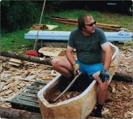 Esben Kannegaard da han i år 2000 udhulede en træstamme efter fortidens recept.