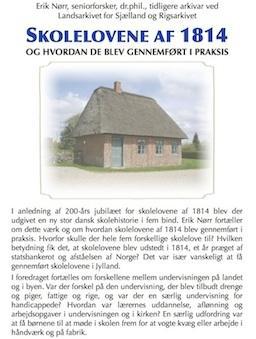 I anledning af 200- års jubilæet for skolelovene af 1814 blev der udgivet en ny dansk skolehistorie i fem bind. Historiker, dr. phil Erik Nørr fortæller om dette værk og om hvordan skolelovene blev gennemført i prasksis. I foredraget fortælles om forskellene mellem undervisningen på landet og i byen. Var der forskel på den undervisning, der blev tilbudt drenge og piger, fattige og rige og var der en særlig undervisning for handicappede ? - Hvordan var lærernes uddannelse, aflønning og arbejdsopgaver i undervisningen og i kirken ? - En særlig udfordring var at få børnene til at møde i skolen fremfor at vogte kvæg eller arbejde i håndværk og på fabrik.