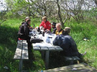 Der hygges omkring den medbragte mad.