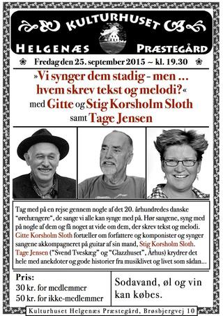 Koncert med Gitte og Stig Korsholm Sloth samt Tage Jensen, fredag den 25. september kl.19.30