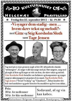 Vi synger dem stadig - men hvem skrev tekst og melodi ? - Det er emnet i Kulturhuset Helgenæs Præstegård fredag d. 25/9 kl. 19.30