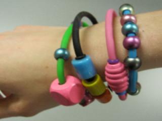 Armbånd af forskellige slags perler og materialer.