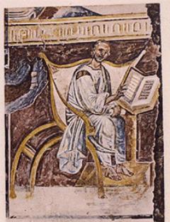 Kirkefaderen Augustin, som han blev malet på det ældste kendte billede, fra 500-tallet, i Laterankirken i Rom.