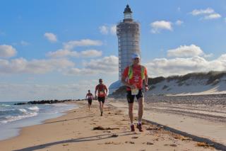 42,2 km - Et "ørken"maraton igennem Nordeuropas eneste "ørken" ud til Anholts smukke fyr og tilbage langs en af strandene for derefter at løbe på halvmaratonruten.