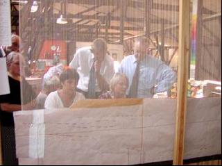 Væveren Annie Bang Sørensen viste den færdige tegning til tæppet og fortalte om de hundredevis af lokale elementer, der kommer til at indgå i den færdige gobelin, som vil have sin fulde højde engang til næste sommer.