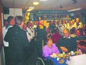 Slupkoret fra Ebeltoft var aftenens overraskelse. Trods den trange plads gav de en koncert for fuld udblæsningen. De kan varmt anbefales skulle vi hilse og sige.