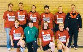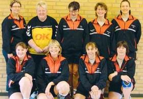 Og endelige er pigerne på Serie 4 damer-2 rykket op fra Serie 4-damer til Serie 3-damer og de ses med holdleder Birthe Lund (bagerst t.v.) På billedet mangler desværre holdets træner, Per Pedersen, plus et par af stamspillerne.